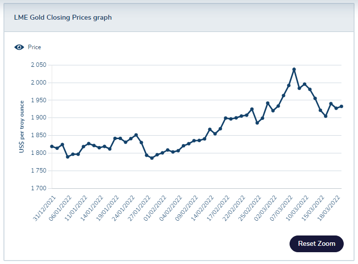 Since the beginning of 2022, the price of gold has risen by as much as 12%. However, in the period from 03.08 to 03.22 the price of gold fell by 5%. Whether the price of gold will continue to fall is difficult to predict. One could only speculate that the price of gold will not change significantly in the near future and will remain stable at least until the end of March